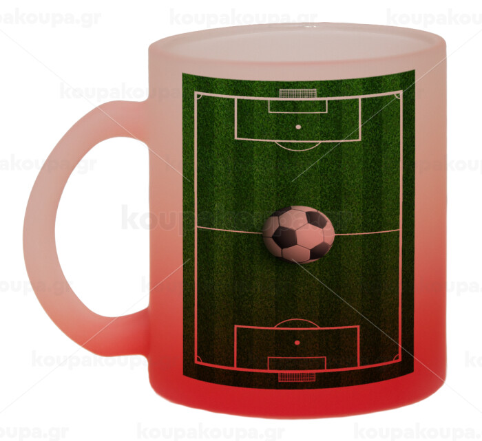 Soccer field, Γήπεδο ποδοσφαίρου, Κούπα γυάλινη δίχρωμη με βάση το κόκκινο ματ, 330ml