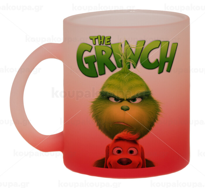 mr grinch, Κούπα γυάλινη δίχρωμη με βάση το κόκκινο ματ, 330ml