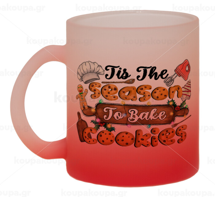 Tis The Season To Bake Cookies, Κούπα γυάλινη δίχρωμη με βάση το κόκκινο ματ, 330ml
