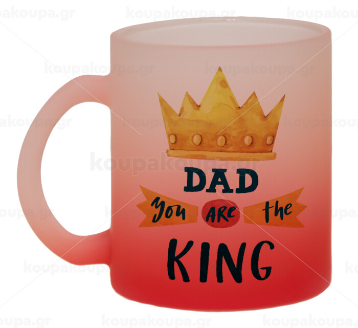 Dad you are the King, Κούπα γυάλινη δίχρωμη με βάση το κόκκινο ματ, 330ml