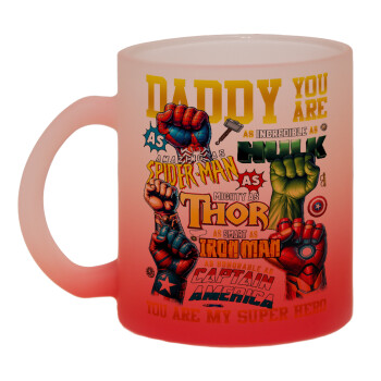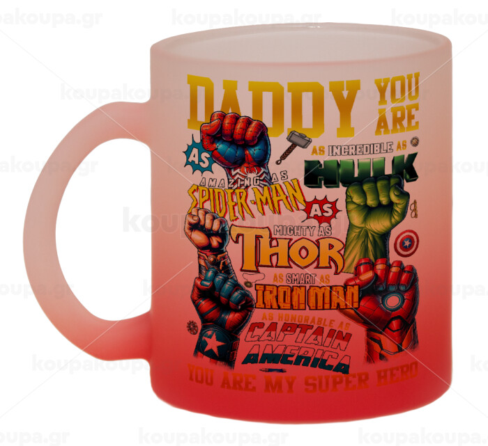 Daddy You Are my Hero, Κούπα γυάλινη δίχρωμη με βάση το κόκκινο ματ, 330ml