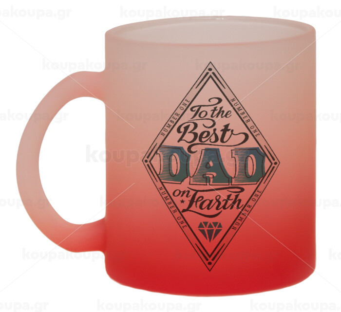To the best DAD on earth, Κούπα γυάλινη δίχρωμη με βάση το κόκκινο ματ, 330ml