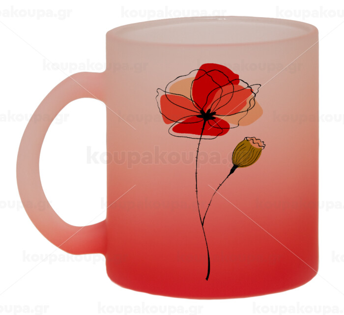 Red poppy flowers papaver, Κούπα γυάλινη δίχρωμη με βάση το κόκκινο ματ, 330ml