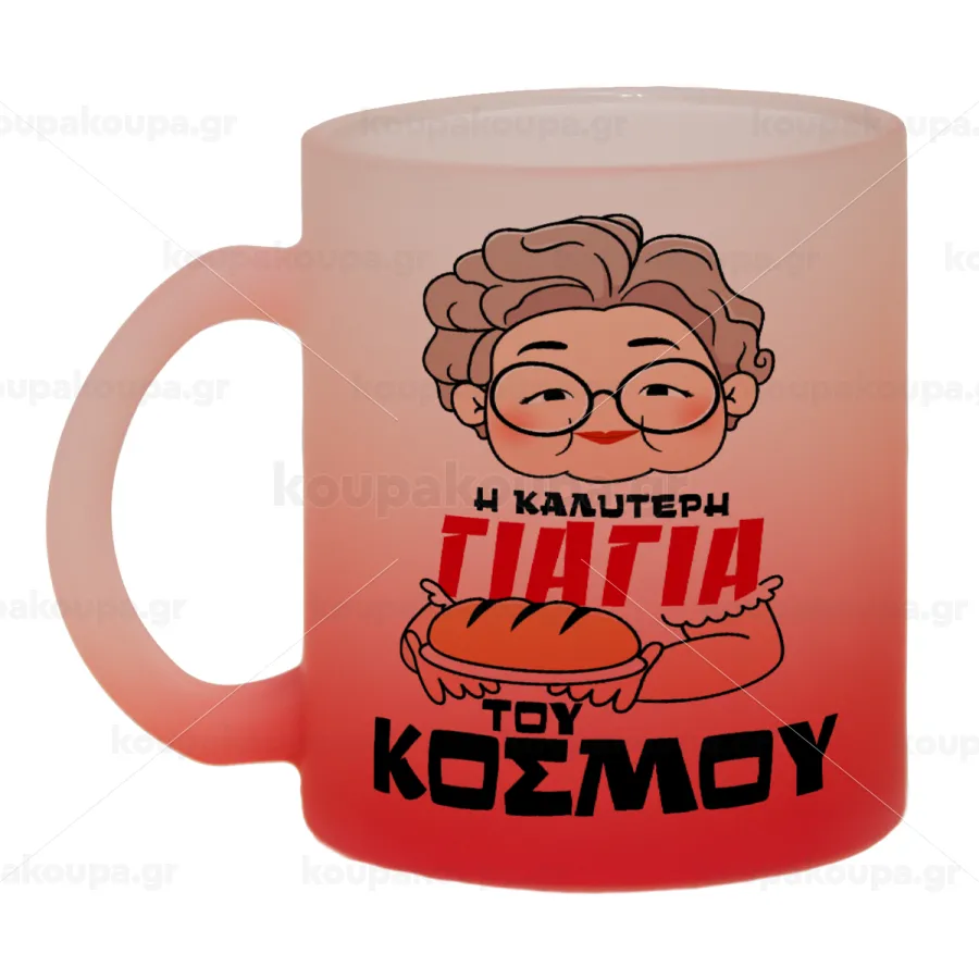 Η καλύτερη γιαγιά του κόσμου!, Κούπα γυάλινη δίχρωμη με βάση το κόκκινο ματ, 330ml