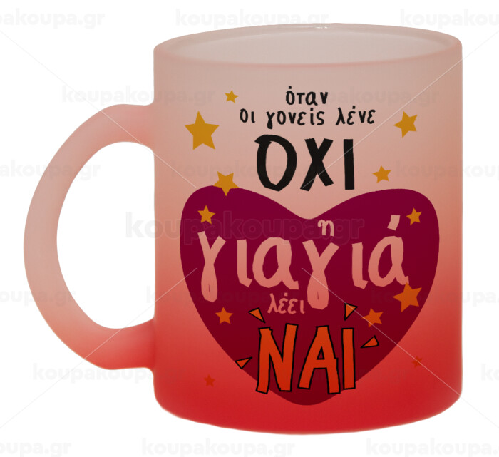 Όταν οι γονείς λένε ΟΧΙ, η γιαγιά λέει ΝΑΙ, Κούπα γυάλινη δίχρωμη με βάση το κόκκινο ματ, 330ml