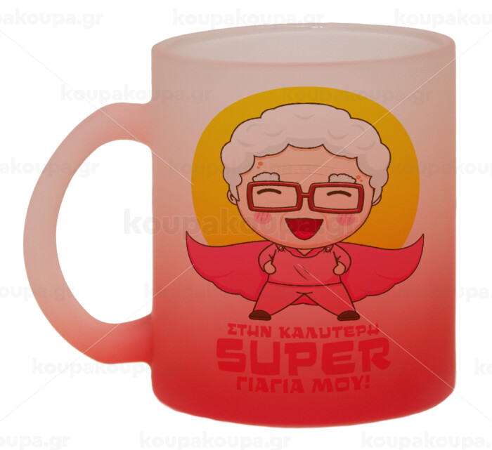 To my best Super Grandma!, Κούπα γυάλινη δίχρωμη με βάση το κόκκινο ματ, 330ml