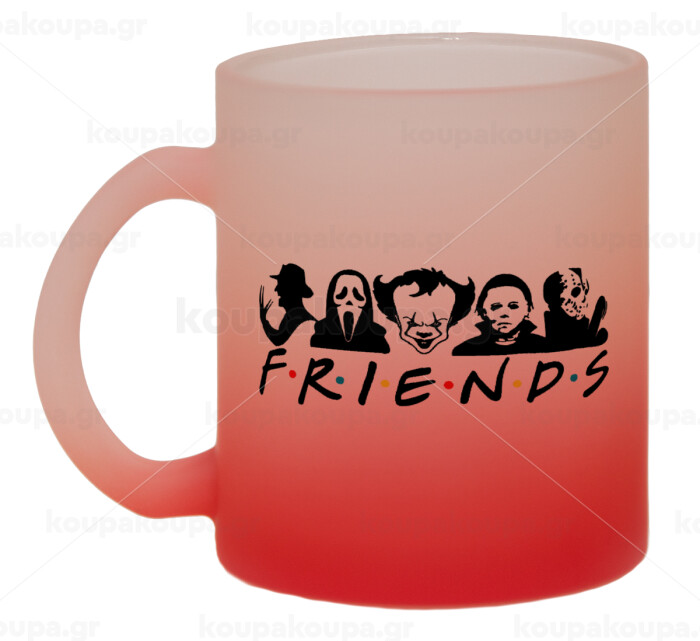 Halloween Friends, Κούπα γυάλινη δίχρωμη με βάση το κόκκινο ματ, 330ml