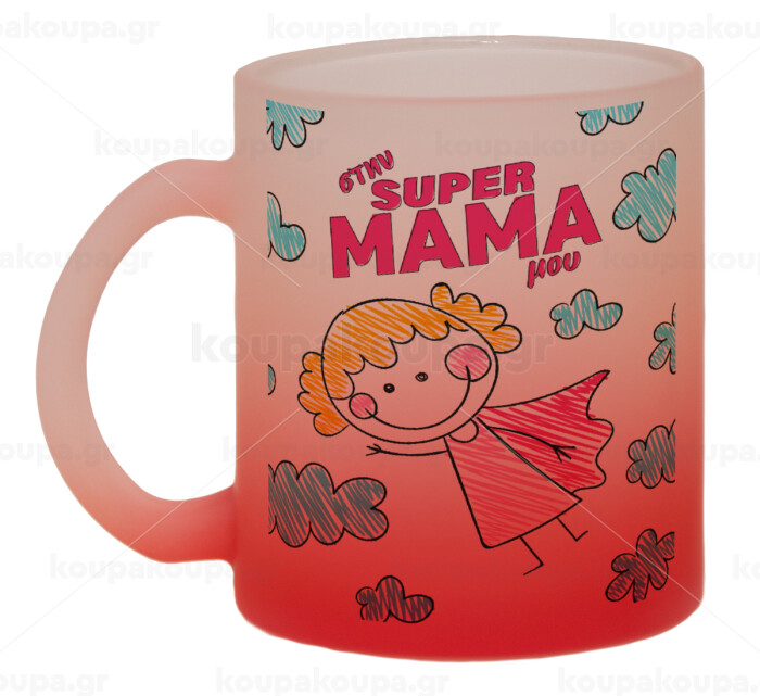Στην SUPER μαμά μου, comic, Κούπα γυάλινη δίχρωμη με βάση το κόκκινο ματ, 330ml