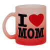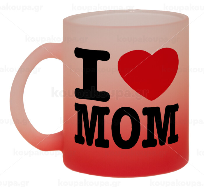 I LOVE MOM, Κούπα γυάλινη δίχρωμη με βάση το κόκκινο ματ, 330ml