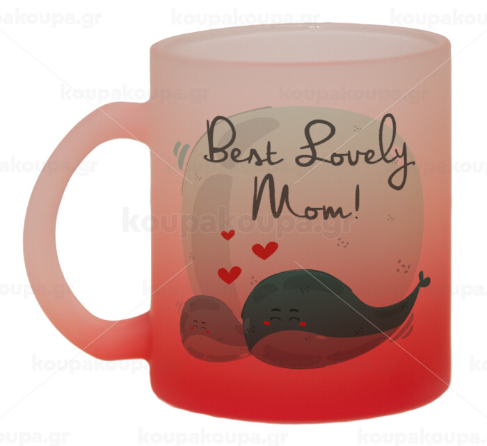 Mothers Day, whales, Κούπα γυάλινη δίχρωμη με βάση το κόκκινο ματ, 330ml