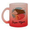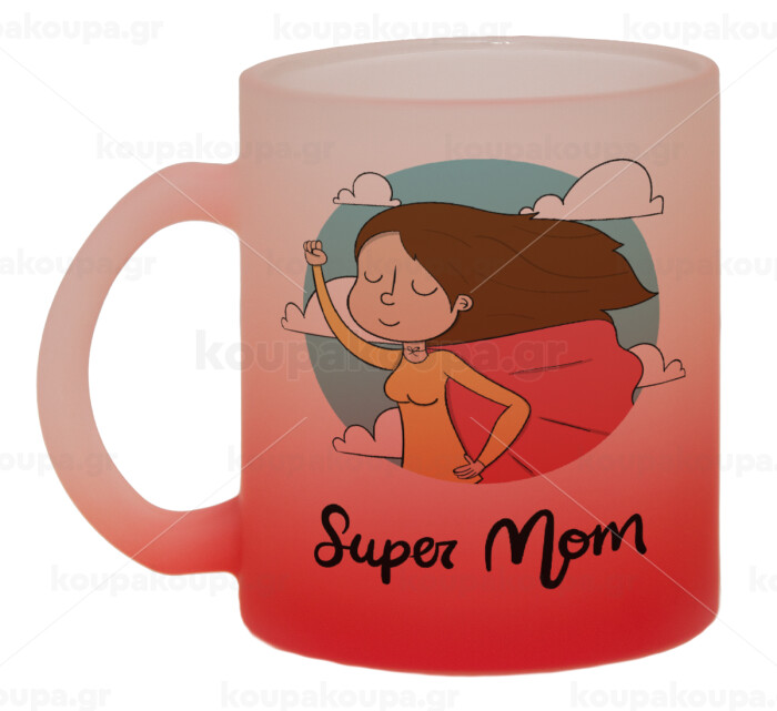 Super mom, Κούπα γυάλινη δίχρωμη με βάση το κόκκινο ματ, 330ml