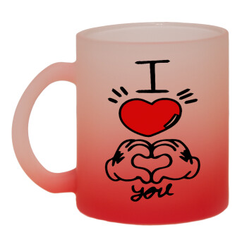 comics hands love, Κούπα γυάλινη δίχρωμη με βάση το κόκκινο ματ, 330ml