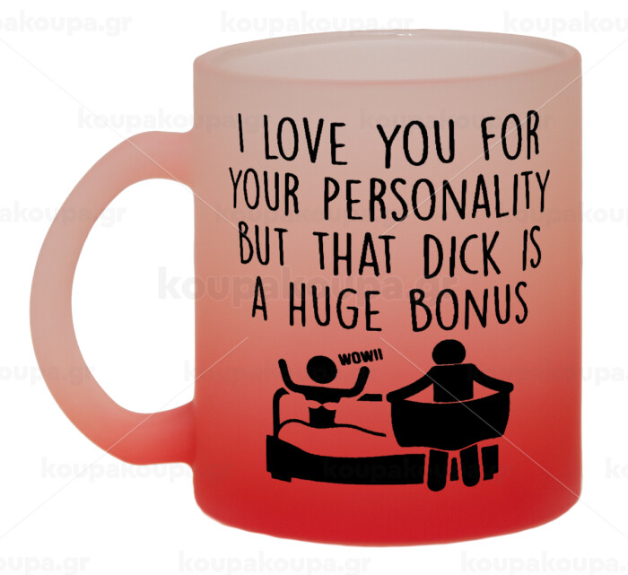 I Love You for Your Personality But that D... Is a Huge Bonus , Κούπα γυάλινη δίχρωμη με βάση το κόκκινο ματ, 330ml