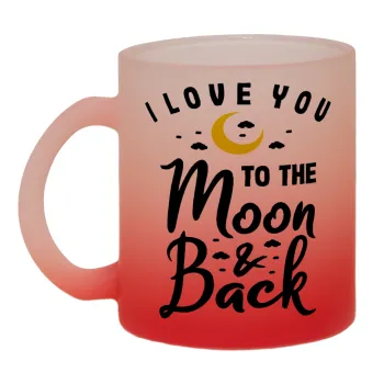 I love you to the moon and back, Κούπα γυάλινη δίχρωμη με βάση το κόκκινο ματ, 330ml