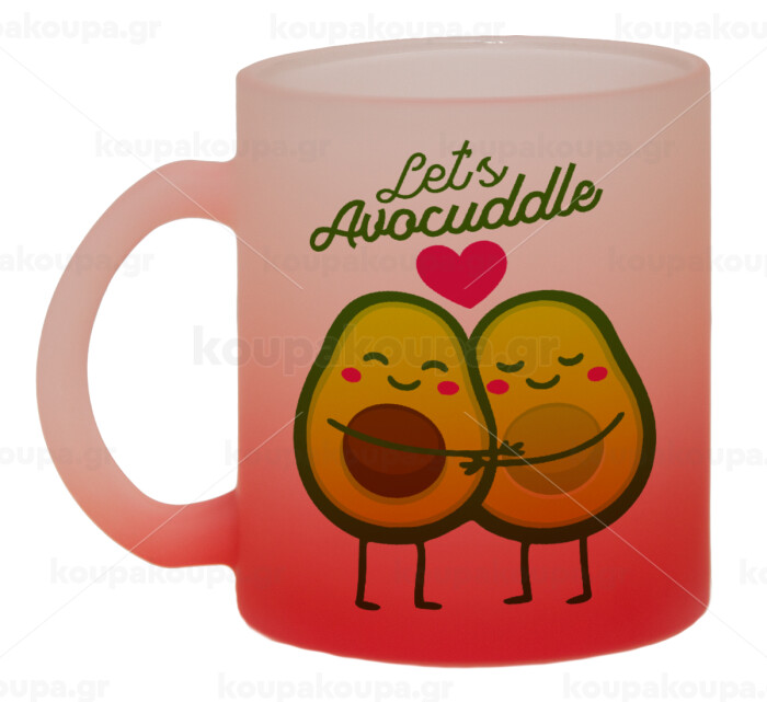 Let's avocuddle, Κούπα γυάλινη δίχρωμη με βάση το κόκκινο ματ, 330ml