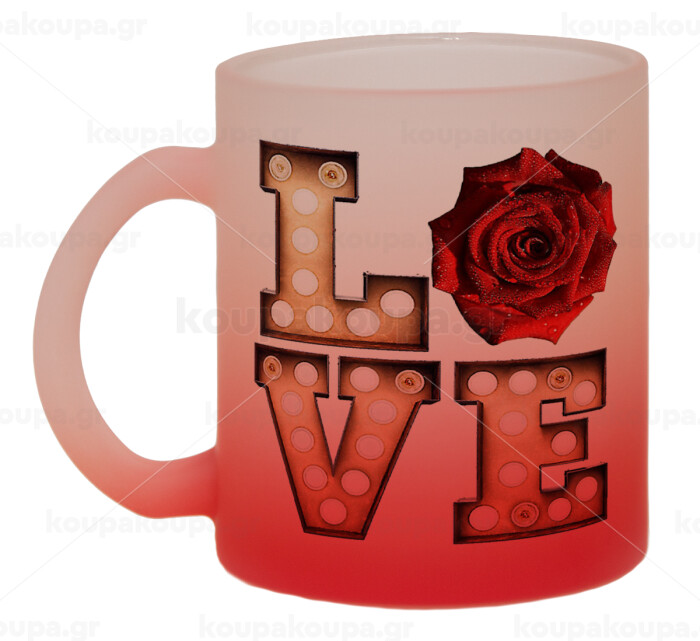 Love lights and roses, Κούπα γυάλινη δίχρωμη με βάση το κόκκινο ματ, 330ml