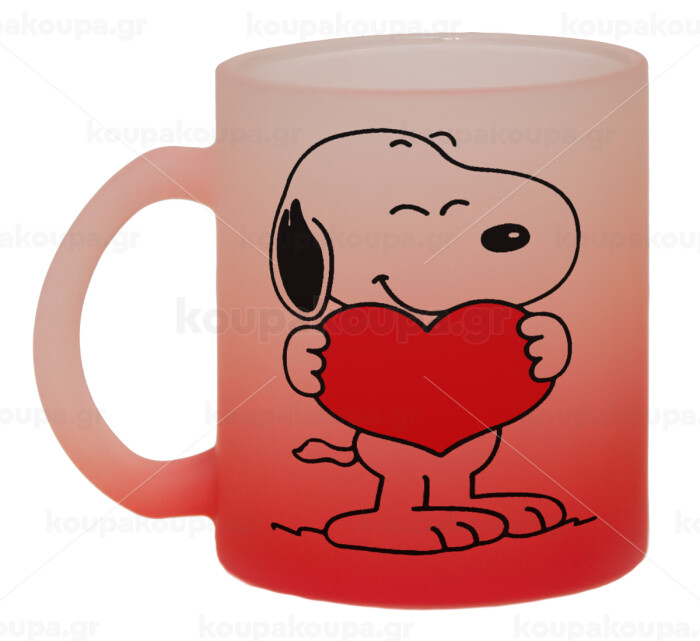 Snoopy takemy heart, Κούπα γυάλινη δίχρωμη με βάση το κόκκινο ματ, 330ml