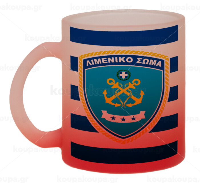 Hellenic coast guard, Κούπα γυάλινη δίχρωμη με βάση το κόκκινο ματ, 330ml