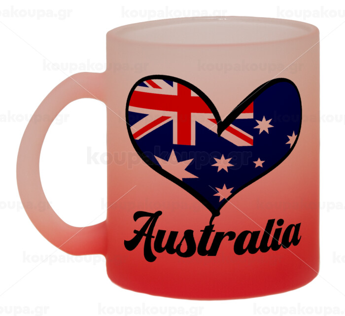 Australia flag, Κούπα γυάλινη δίχρωμη με βάση το κόκκινο ματ, 330ml