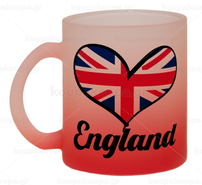 England flag, Κούπα γυάλινη δίχρωμη με βάση το κόκκινο ματ, 330ml