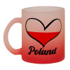 Poland flag, Κούπα γυάλινη δίχρωμη με βάση το κόκκινο ματ, 330ml