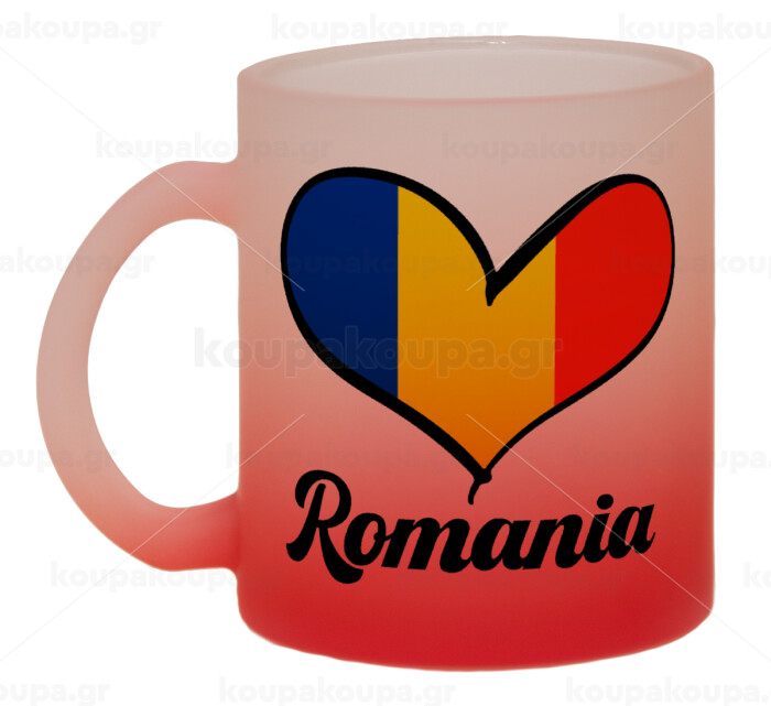 Romania flag, Κούπα γυάλινη δίχρωμη με βάση το κόκκινο ματ, 330ml