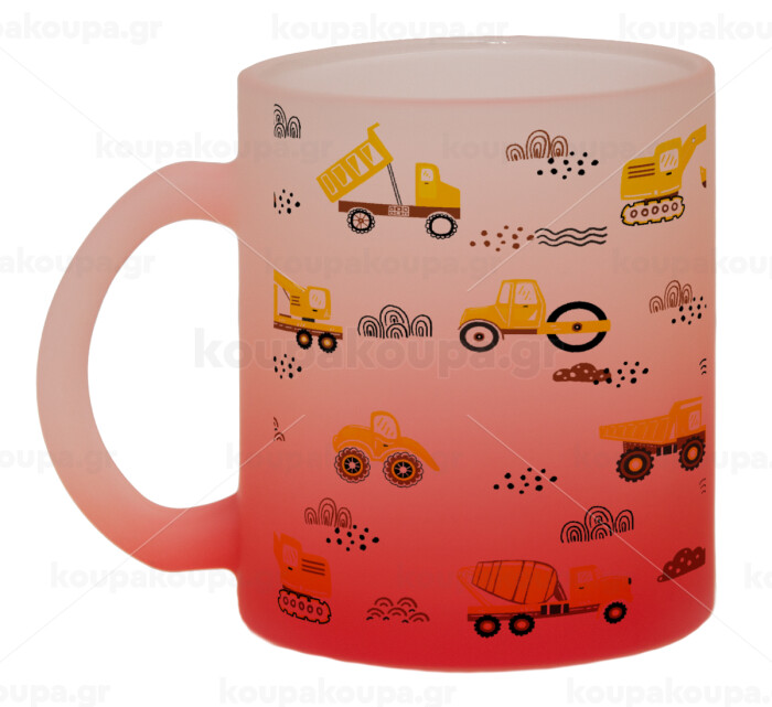 Car construction, Κούπα γυάλινη δίχρωμη με βάση το κόκκινο ματ, 330ml