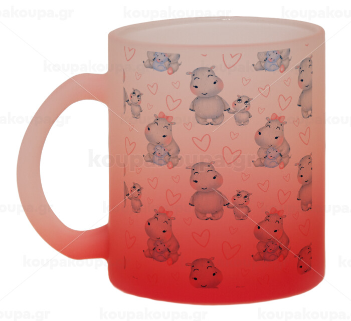 Hippo, Κούπα γυάλινη δίχρωμη με βάση το κόκκινο ματ, 330ml
