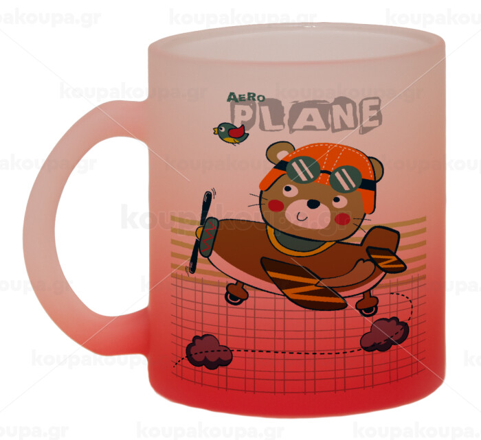 Kids Plane, Κούπα γυάλινη δίχρωμη με βάση το κόκκινο ματ, 330ml