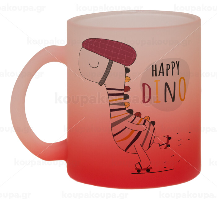 Happy Dino, Κούπα γυάλινη δίχρωμη με βάση το κόκκινο ματ, 330ml