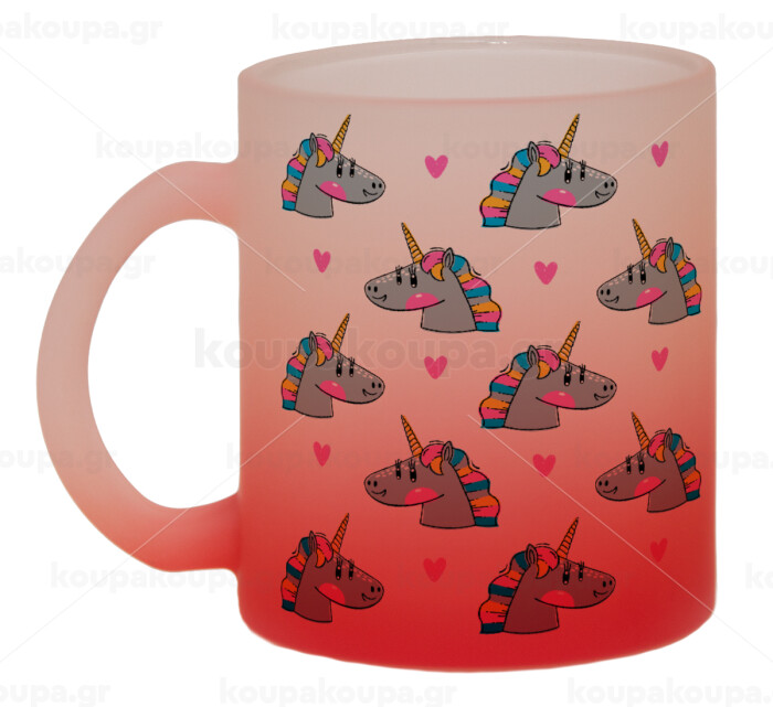 Unicorn, Κούπα γυάλινη δίχρωμη με βάση το κόκκινο ματ, 330ml