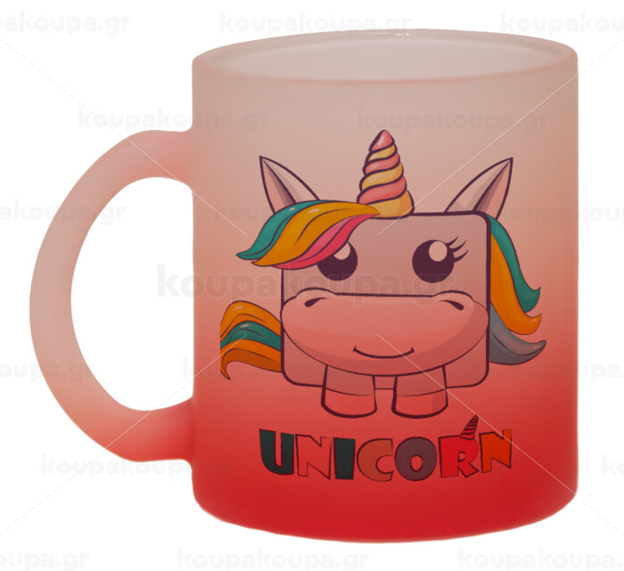 Unicorns cube, Κούπα γυάλινη δίχρωμη με βάση το κόκκινο ματ, 330ml