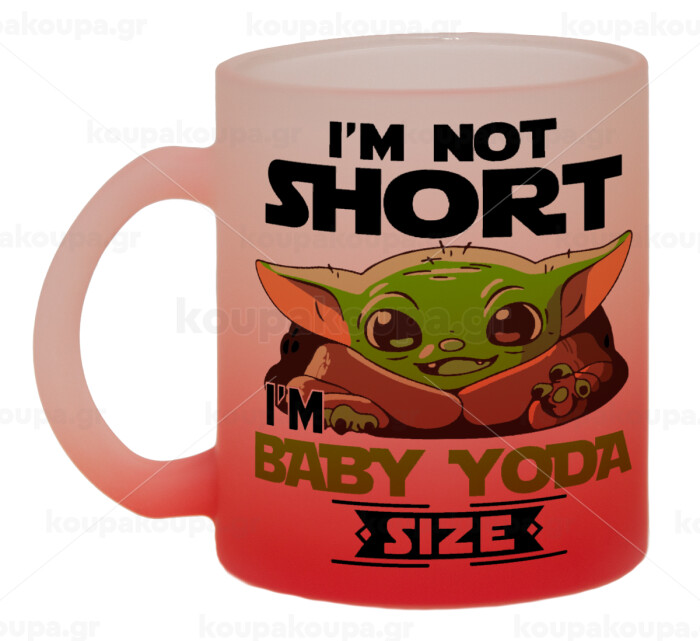 I'm not short, i'm Baby Yoda size, Κούπα γυάλινη δίχρωμη με βάση το κόκκινο ματ, 330ml