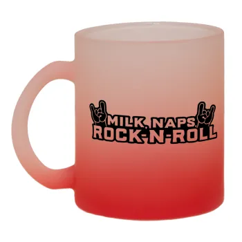 Milk, Naps, Rock N Roll, Κούπα γυάλινη δίχρωμη με βάση το κόκκινο ματ, 330ml