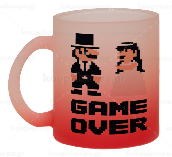 8bit Game Over Couple Wedding, Κούπα γυάλινη δίχρωμη με βάση το κόκκινο ματ, 330ml