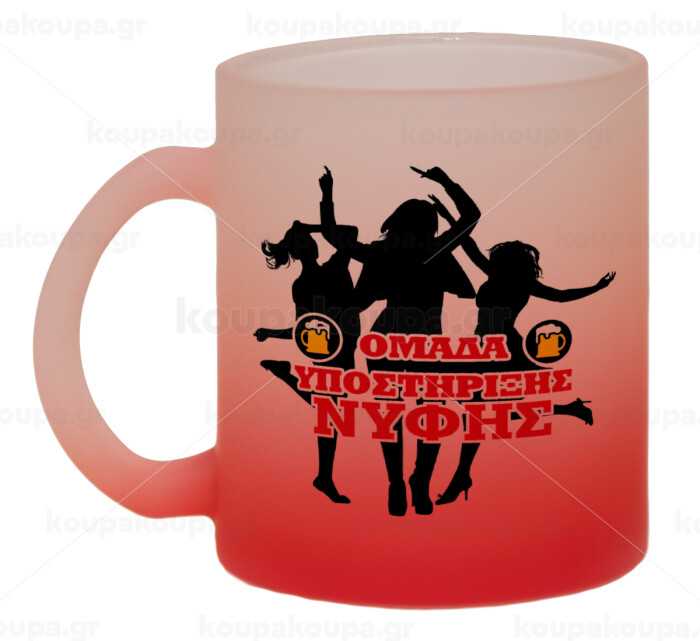 Bachelor Ομάδα υποστήριξης Νύφης, Κούπα γυάλινη δίχρωμη με βάση το κόκκινο ματ, 330ml