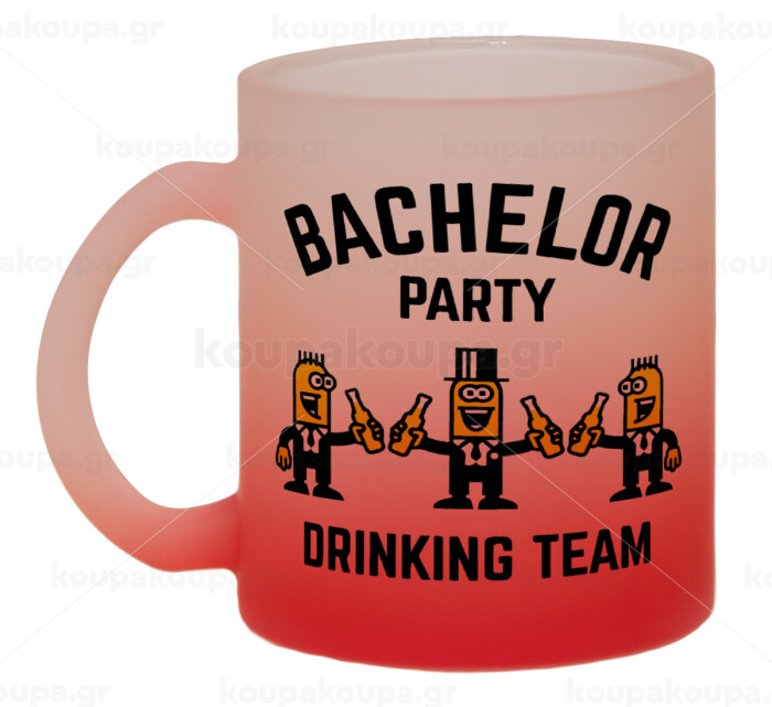 Bachelor Party Drinking Team, Κούπα γυάλινη δίχρωμη με βάση το κόκκινο ματ, 330ml