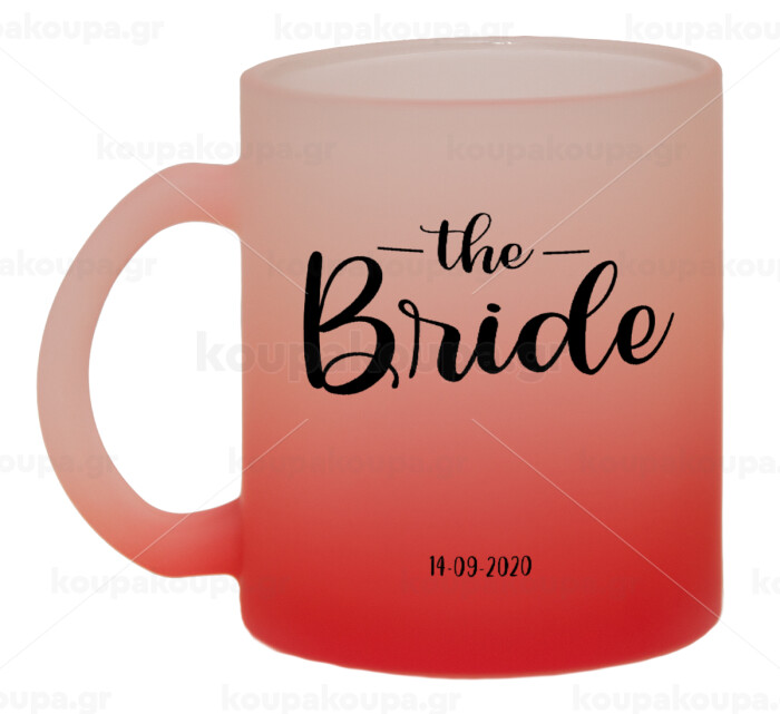 Groom & Bride (Bride), Κούπα γυάλινη δίχρωμη με βάση το κόκκινο ματ, 330ml