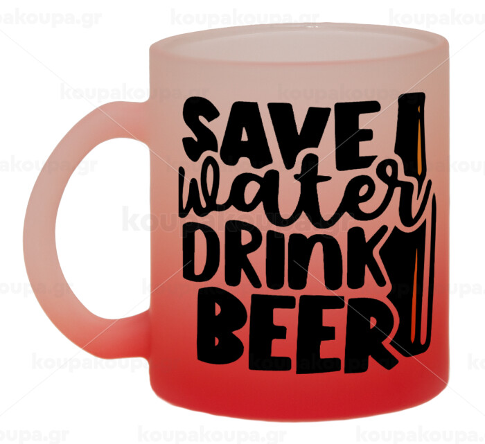 Save Water, Drink BEER, Κούπα γυάλινη δίχρωμη με βάση το κόκκινο ματ, 330ml