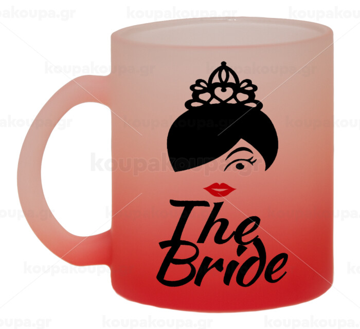 Bride kiss, Κούπα γυάλινη δίχρωμη με βάση το κόκκινο ματ, 330ml