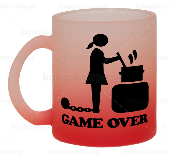 Woman Game Over, Κούπα γυάλινη δίχρωμη με βάση το κόκκινο ματ, 330ml