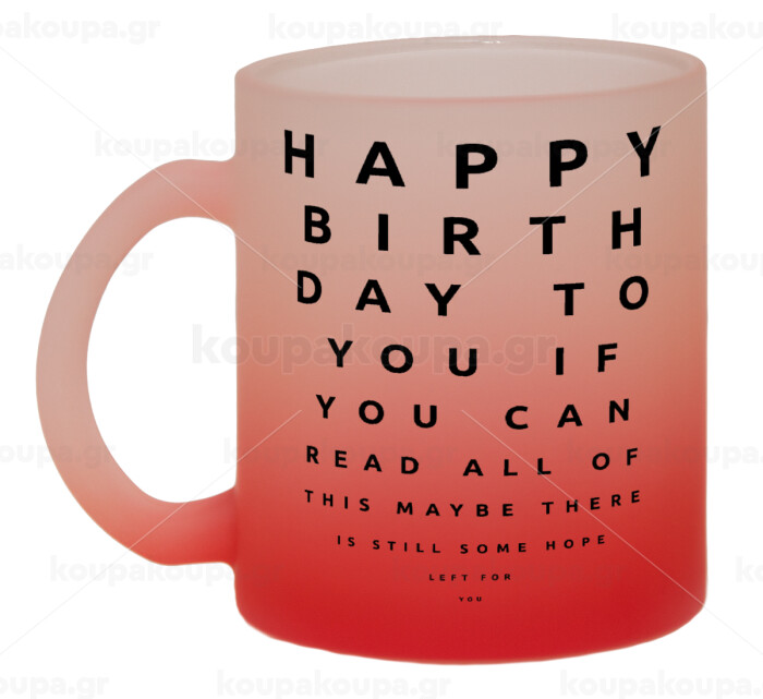 EYE tester happy birthday., Κούπα γυάλινη δίχρωμη με βάση το κόκκινο ματ, 330ml
