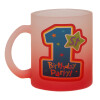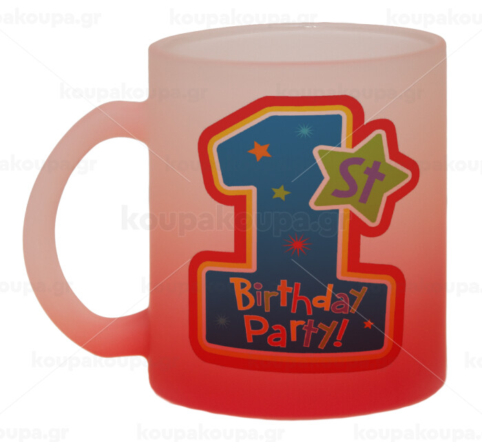 Happy 1st Birthday, Κούπα γυάλινη δίχρωμη με βάση το κόκκινο ματ, 330ml