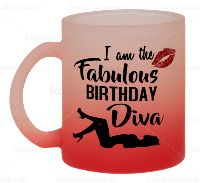 I am the fabulous Birthday Diva, Κούπα γυάλινη δίχρωμη με βάση το κόκκινο ματ, 330ml