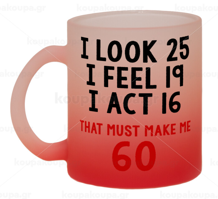 Looks, feels, acts LIKE your AGE, Κούπα γυάλινη δίχρωμη με βάση το κόκκινο ματ, 330ml