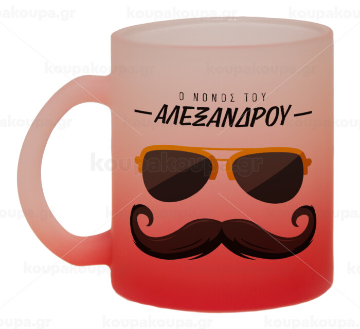 Ο νονός μου, μουστάκι με γυαλιά, Κούπα γυάλινη δίχρωμη με βάση το κόκκινο ματ, 330ml