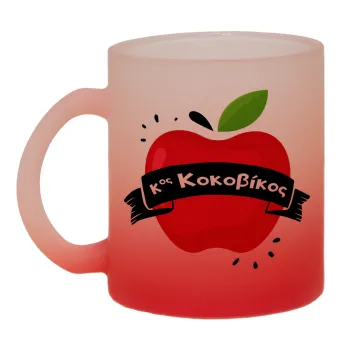 Αναμνηστικό Δώρο Δασκάλου Κόκκινο Μήλο, Κούπα γυάλινη δίχρωμη με βάση το κόκκινο ματ, 330ml