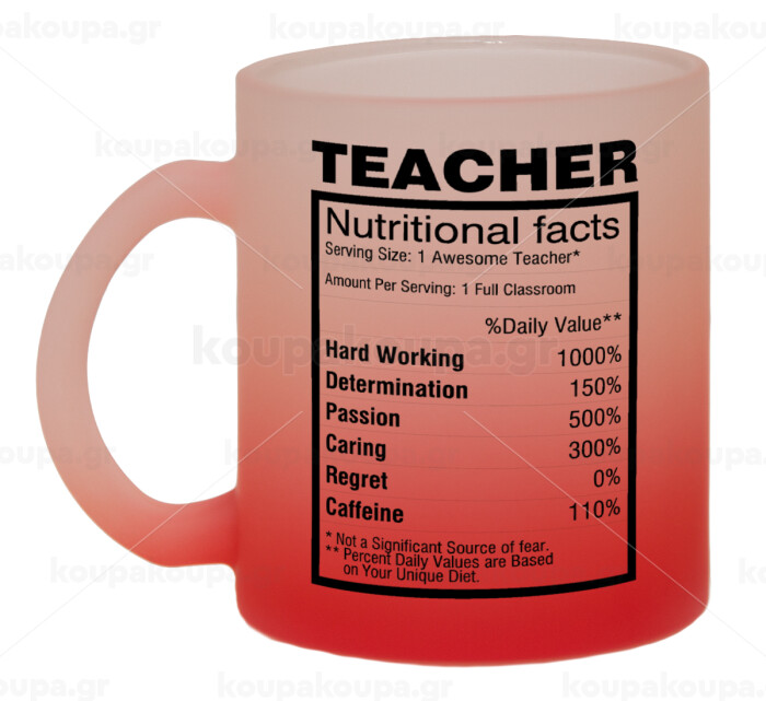 teacher nutritional facts, Κούπα γυάλινη δίχρωμη με βάση το κόκκινο ματ, 330ml
