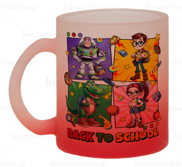 Back to the School Buzz & Friends, Κούπα γυάλινη δίχρωμη με βάση το κόκκινο ματ, 330ml