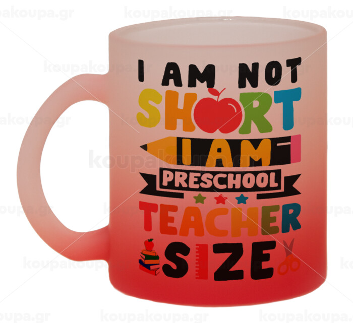 I Am Not Short I Am Preschool Teacher Size, Κούπα γυάλινη δίχρωμη με βάση το κόκκινο ματ, 330ml
